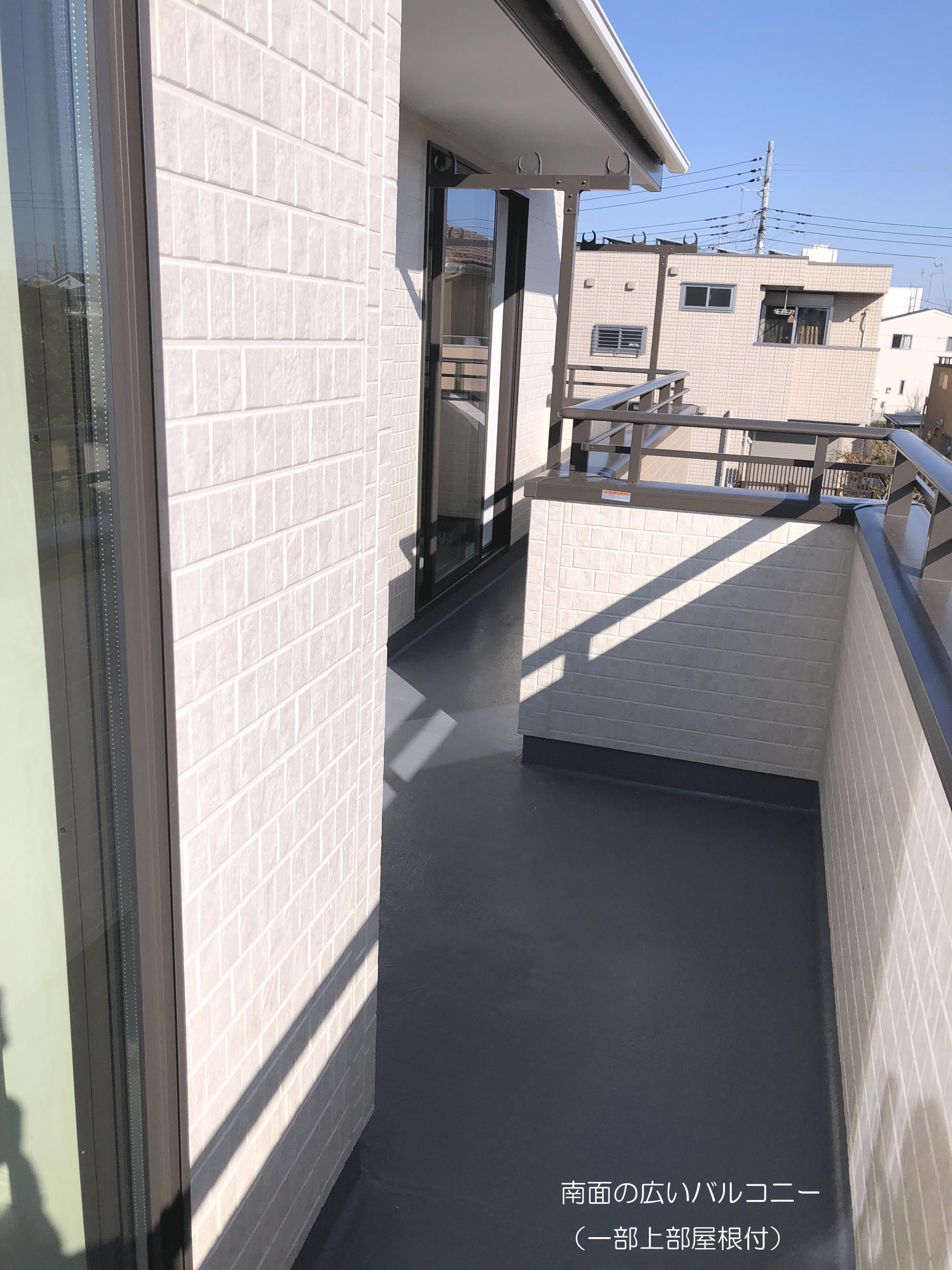 ひろい!バルコニーは使い道様々で嬉しい! 自由設計でも、ワイドバルコニーもオプションなしで可能です。